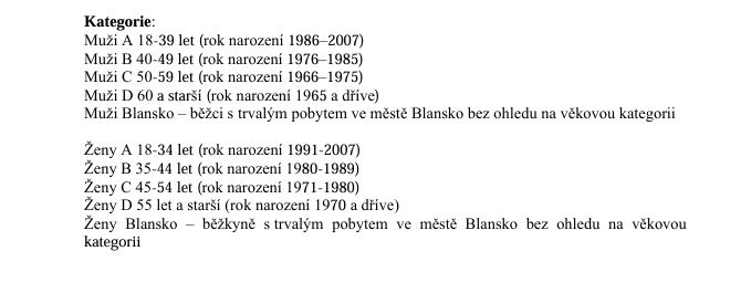 Kategorie v závodě: | Muži A,B,C,D,Muži Blansko Ženy A,B,C,D, Ženy Blansko |