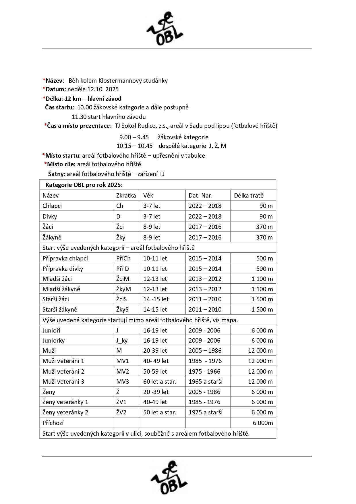 Další informace: | Muži běží dvě kola, Junioři, juniorky, ženy a příchozí běží jedno kolo.
