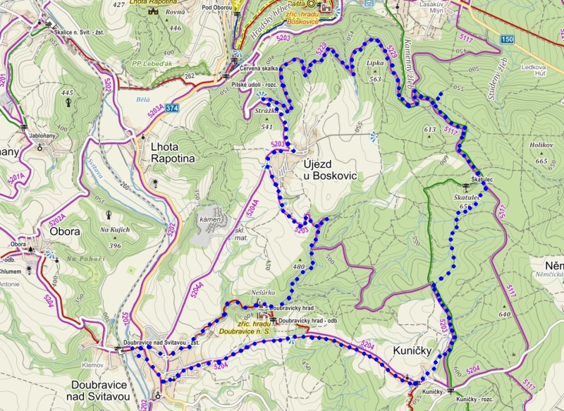 Oldovy trasy – díl prvníUrčitě většina z nás, rekreačních běžců, už stála před otázkou, kam si dnes půjdu zaběhat. Máme své oblíbené trasy. Trasy, kam chodíme trénovat, abychom se zlepšovali, nebo běžecké závody. To se dostáváme do různých míst, které bychom většinou ani nepoznali. Aby mě běh bavil, musí být pestrý. S tím souvisí i hledání nových běžeckých tras a poznávání nových míst. Za poslední roky jsem takových tras nashromáždil mnoho. Většinou jsou to víkendové výběhy, které jsou pro mě i regenerační. Není problém se zastavit a pokochat se výhledy, nebo přibrzdit u něčeho zajímavého. Tempo nad 6 min./km, vzdálenost většinou 15 až 25 km. Když běžíte s kamarády a můžete si popovídat, je to ještě příjemnější. Tyto běhy beru jako základ pro své další běžecké aktivity a rozhodně nejsou návodem jak a kolik trénovat. Nezáleží na počasí, ročním období, penězích, stačí chuť a nějaká běžecká výbava. Na ukázku jsem vybral trasu, ke které mám blízký vztah, protože prochází místy jako je Babylon, Lipka, Zlatník, Tři rybníčky, po kterých jsem se pohyboval od dětských let, jen jsem tehdy nevěděl, že i to už byl trénink. Doubravice-Kuničky-Škatulec-Újezd u Boskovic-Doubravice Délka 22 km, nastoupáno 500 m. Výchozí bod je totožný s místem, kde začíná Svitava kros. Je zde místo pro zaparkování a je to nedaleko od železniční stanice. I začátek jde ulicí Sokolskou, na náměstí však odbočíme vlevo na cyklostezku 5204 směr Kuničky. Stoupání do Kuniček je souvislé a překonává 230 výškových metrů. Po vběhnutí do obce si hlídáme první odbočku vlevo. Tato místní komunikace kolem obecního úřadu nás přivede na zelenou turistickou značku, což je úsek, kde se můžeme trošku vydýchat. Zelená pokračuje okrajem lesa, odkud už jsou pěkné výhledy. Po chvíli se objeví křižovatka lesních cest a turistické odpočívadlo. Opustíme značené trasy a odbočíme vpravo na širokou lesní cestu. Začne závěrečné dvoukilometrové stoupání, na kterém poprvé potkáme nedaleko pramenící potůček Nešůrka. Přibíháme na novou asfaltovou svážnici a napojíme se vlevo na cyklotrasu 5117. Po necelých 200 metrech se ocitnem na nejvyšším bodu trasy 655 m.n.m. kousek od vrcholu Škatulec. Je možné, že v zimě se zde budete brodit sněhem, a přitom na startu nebylo po sněhu ani památky. Škatulec je zde jeden z několika přibližně stejně vysokých vrcholů. Sousední Holíkov je potom nejvyšší bod Adamovské vrchoviny, západního výběžku vrchoviny Drahanské. Překonáme závoru a po jednom kilometru sbíháme k rybníčku Domanka. Pěkné místo k zastavení. Cesta zde zabočí pravoúhle vlevo. Čeká nás další kilometrové klesání k odbočce na cyklostezku 5229. Ještě než k odbočce dorazíme, stojí za to krátce opustit trasu. Asi 300 m před odbočkou určitě nepřehlédnete strmou širokou lesní cestu vpravo. Po krátkém výběhu se na vrcholku otevře krásný výhled na Vratíkovskou přehradu a Drahanskou vrchovinu. Trasa Mikulášského běhu na Okrouhlé je před námi. Vracíme se na trasu, kde u lesní kůlny prudce odbočujeme vlevo na zmíněnou cyklostezku. Rovně bychom se dalším dvoukilometrovým seběhem dostali na spodní část silnice vedoucí z Boskovic do Valchova. Běžíme nedávno vybudovanou svážnicí se zvlněným profilem po úbočí kopců Lipka a Zlatník. Právě zde se před nedávnem za zvláštních okolností našel poklad z doby třicetileté války, nyní vystavený v Moravském zemském muzeu. Mezi oběma kopci se cesta zařízne do údolí U Třech rybníčků. Na klikatící trase se otevírají krásné výhledy na okolí Boskovic a vesnice Malé Hané. Jedinečný je v závěru tohoto úseku výhled na boskovický hrad. Jako na dlani, pod naší úrovní, hezký to úkaz. Hluboko pod námi je Pilské údolí, kudy vede trasa Běhu za sedmizubým hřebenem. Tento úsek znají také běžci Boskovické etapy Moravského ultramaratonu, jen ho běží opačným směrem. My se na trasu etapy ještě vrátíme. Svážnice končí závorou. Vyběhneme na silnici a zabočíme vlevo, je to značená cyklostezka 5203. Čeká nás poslední souvislejší stoupání do Újezdu. Zde odbočíme na silnici vedoucí do Doubravice, ale cyklostezka brzy odbočí vlevo směr koupaliště. Opět se nám otevřou pěkné výhledy. Pod námi Malý a Velký Chlum a dále se začíná zvedat Hornosvratecká vrchovina s nejvyšším vrcholem Horní Les nedaleko Rovečného. Rozhledna na něm stojící je myslím dohlédnutelná od hájenky u Újezdu, kam je možné si taky odskočit při průběhu obcí. Už jsme se opět napojili na trasu MUMu a ta bude společná až do Doubravice. Za koupalištěm vbíháme do lesa a po přeběhnutí potůčku ihned odbočíme na cestu, která sleduje jeho tok. Cesta už vede jen z kopce. Po chvíli opouštíme cyklostezku, ta se kolem jednoho z přítoků vrací do Kuniček, stále po proudu se napojíme na známou Nešůrku, kde k jejímu překonání využijeme několikrát dřevěných můstků. Napojíme se také na červenou turistickou trasu a pro ty, kteří si chtějí prodloužit běh, je možné využít odbočku na zříceninu hradu Doubravice. My se po červené dostaneme do Doubravice, tudíž zpět do místa, kde jsme celou trasu začínaly. Pokud se někdo pročetl až do těchto míst, doufám, že není unavený víc než po absolvování trasy samotné. O. Šperka Mapa trasy ZDE |