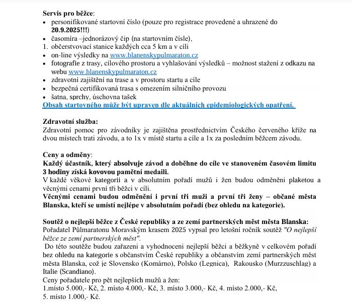 Odměny: | První tři v kategorii - věcné ceny. Muži a ženy absolutně: 1. - 5 000 Kč, 2 - 3 000 Kč, 3.- 1 000 Kč |