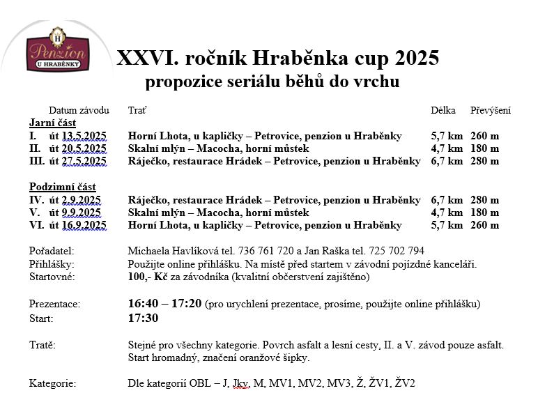 Propozice: Hraběnka Cup - Horní Lhota-Petrovice